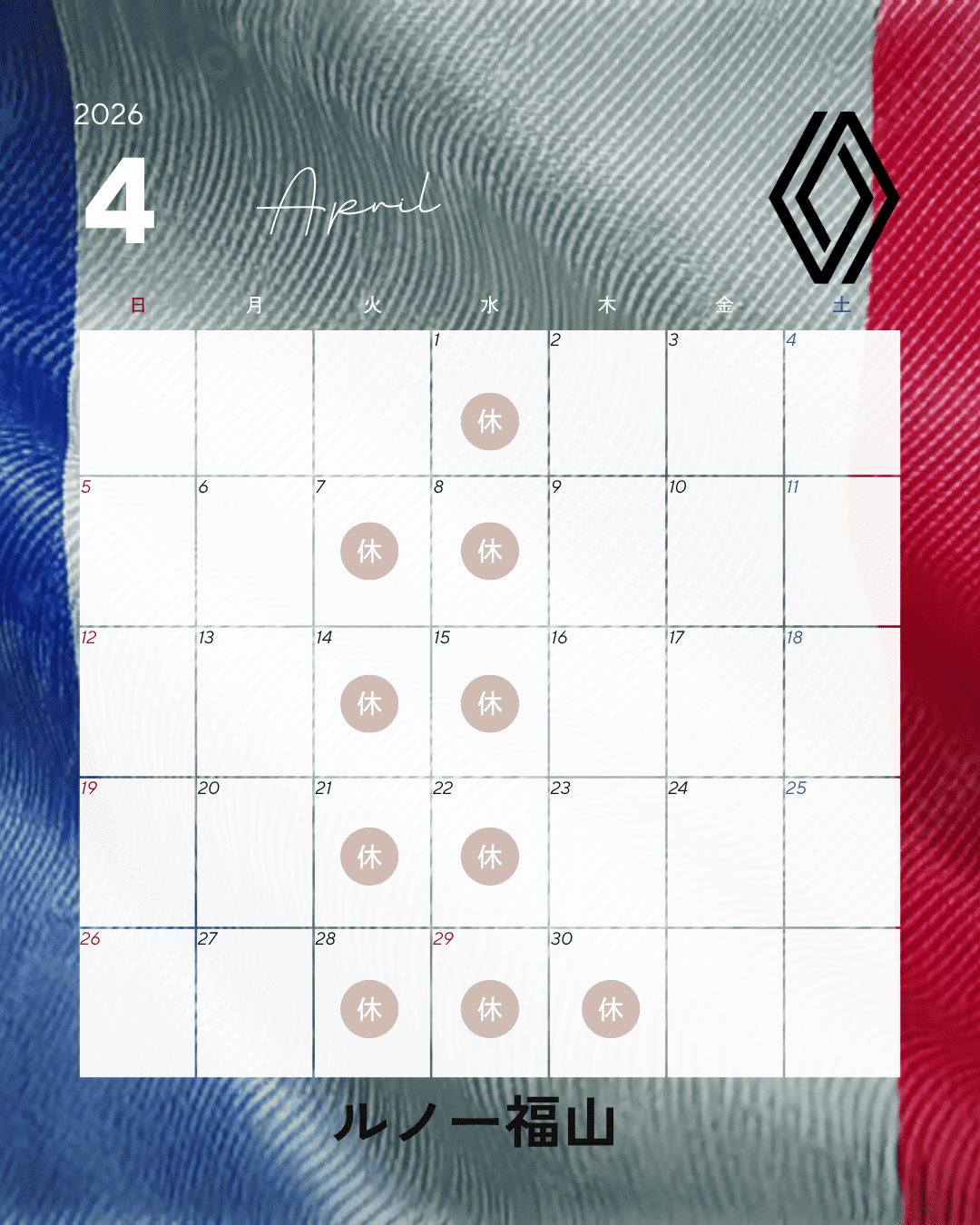 4月の営業日カレンダーのご案内です!